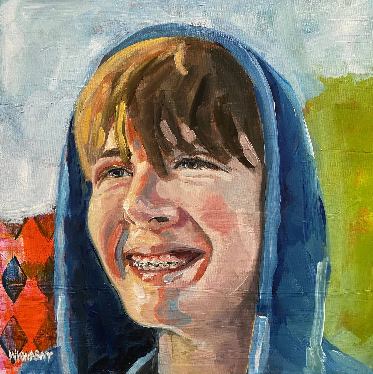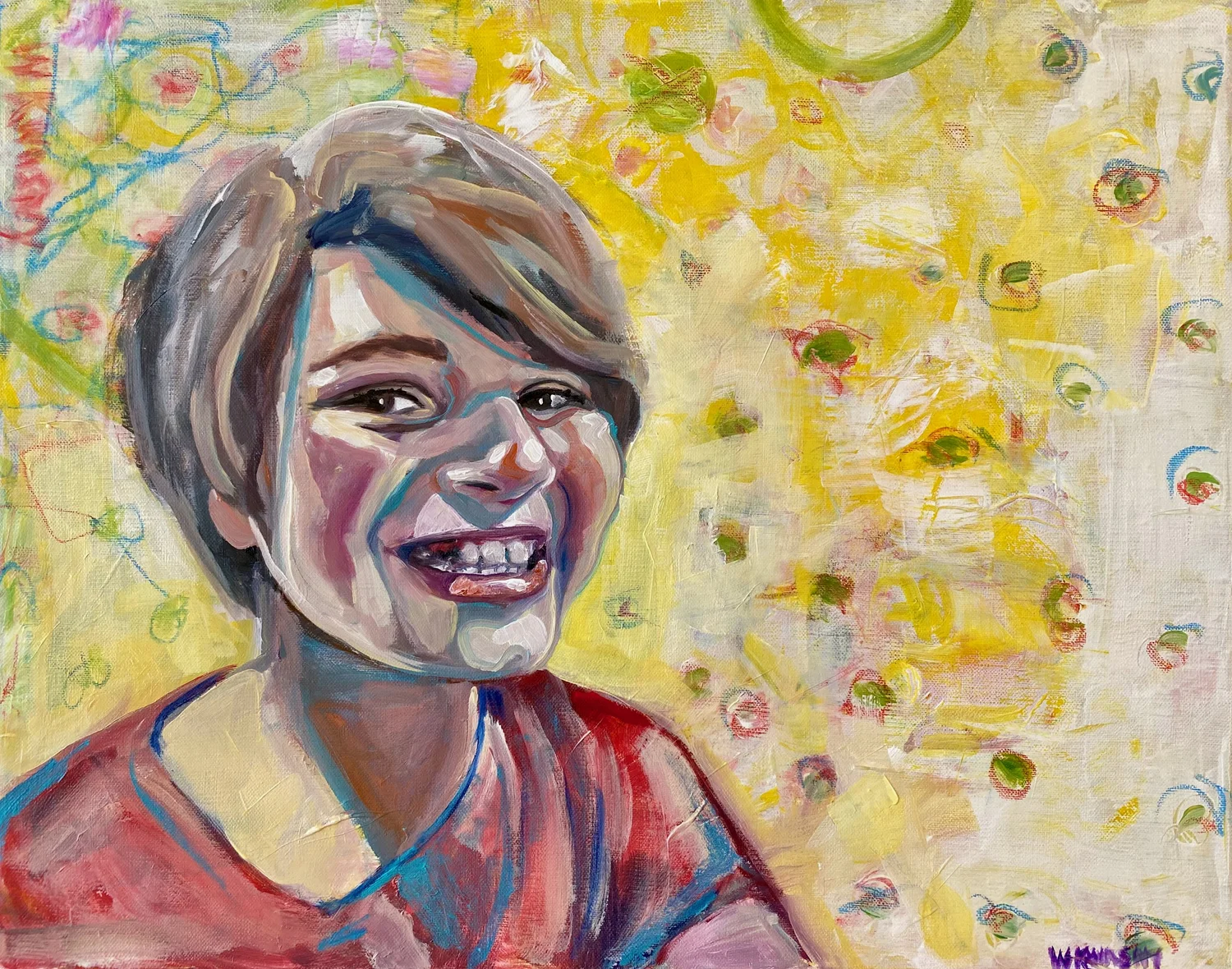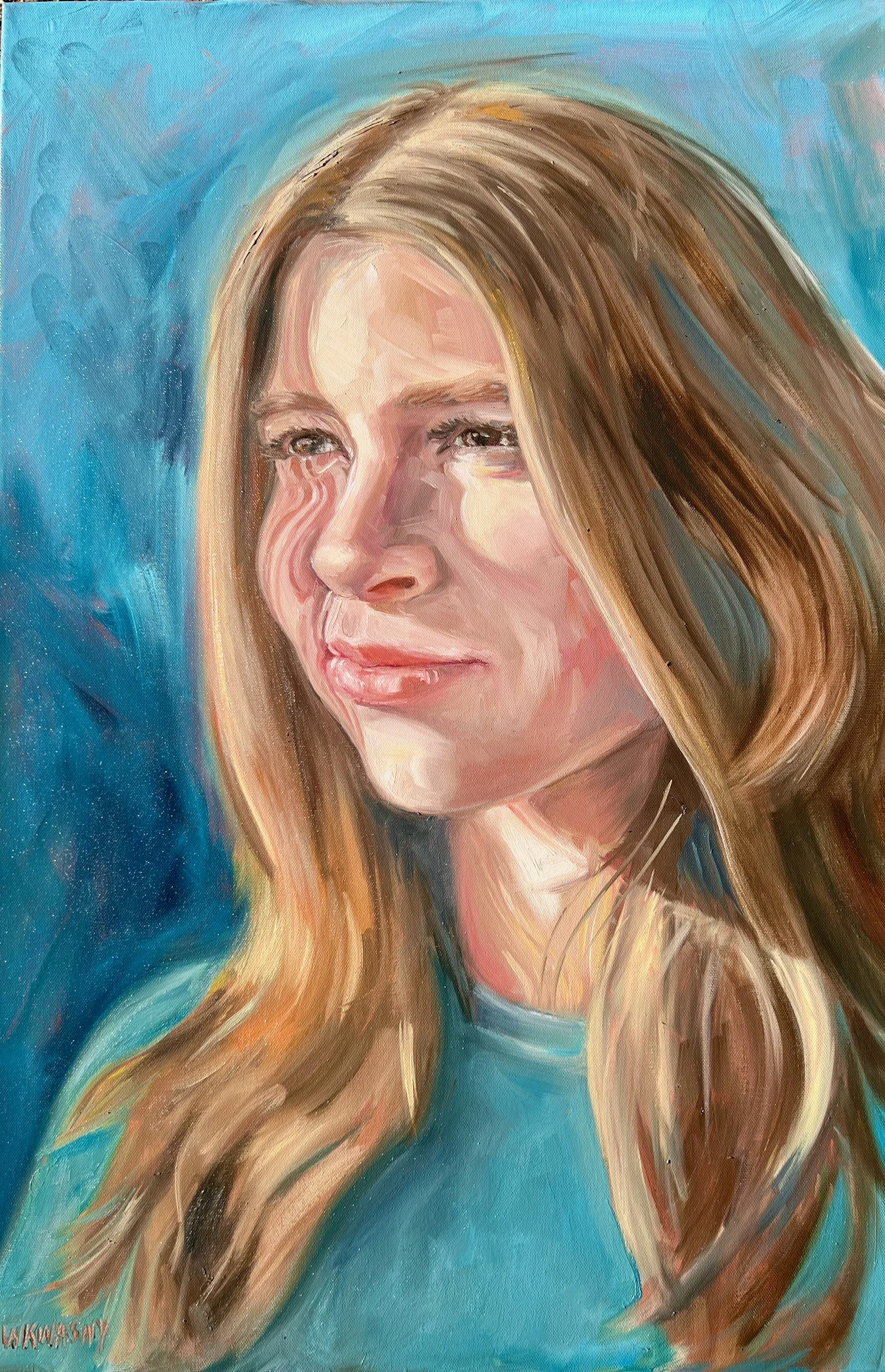 Teal and Red Kristen B with Dog- SOLD